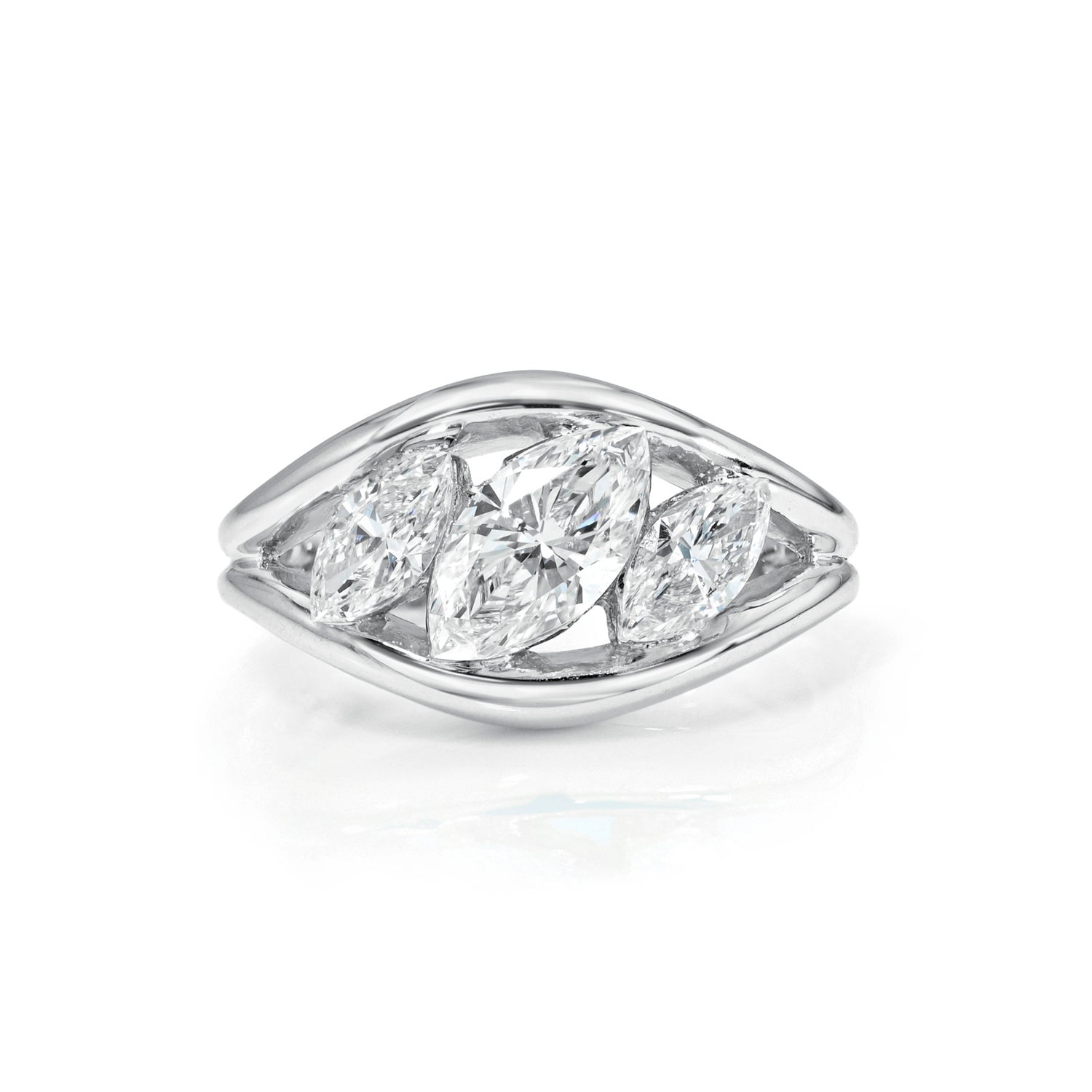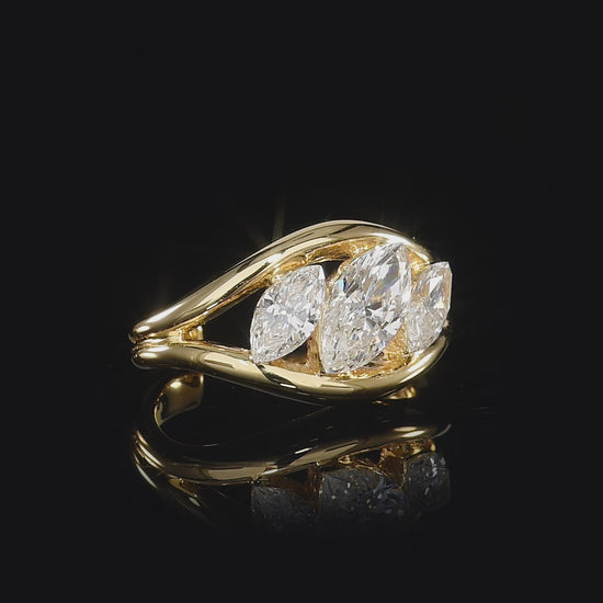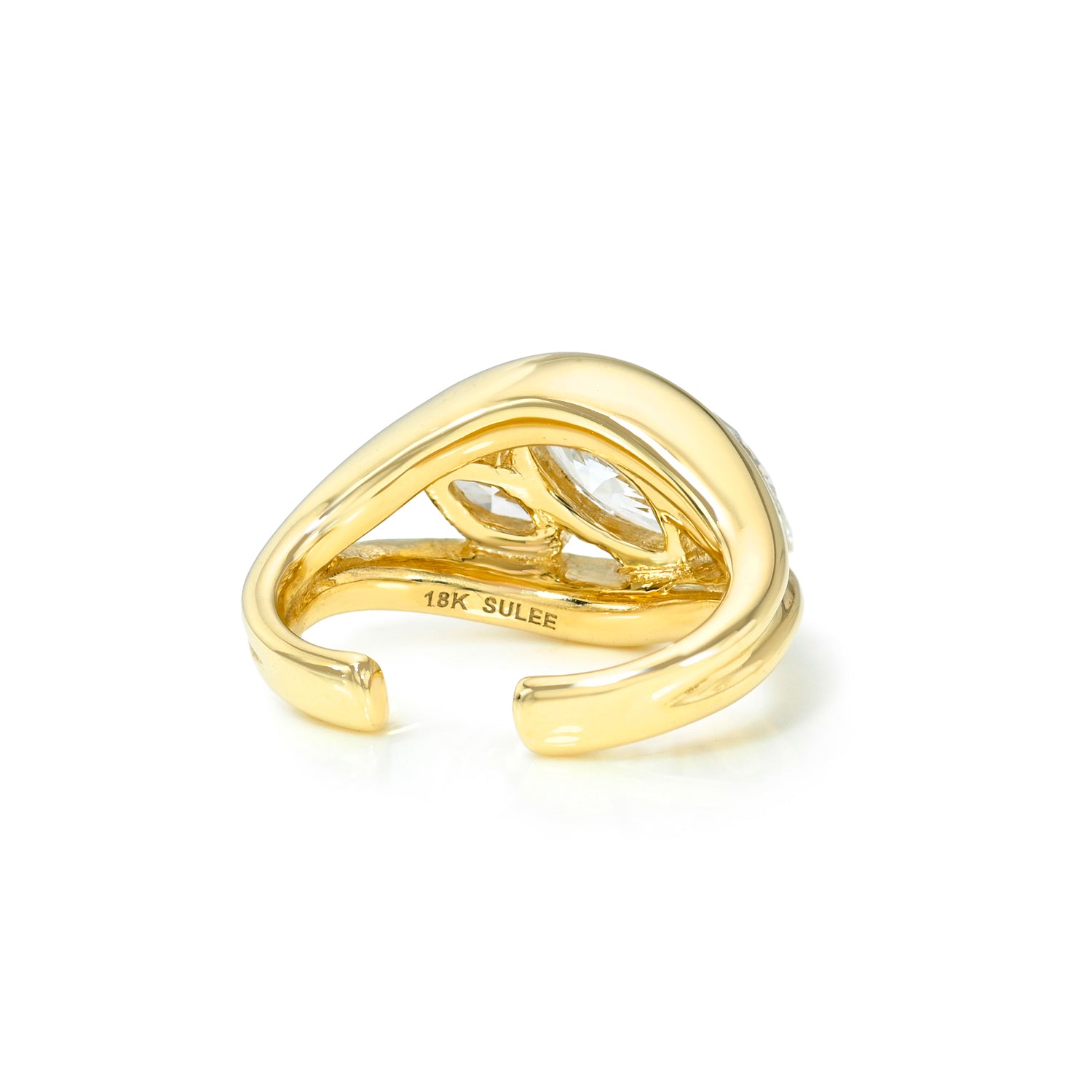 A contemporary ear essential. The TRIPLE DIAGONAL MARQUISE CUFF features three marquise cut diamonds set intentionally angled within two tapered walls of polished gold. This design proves that the best details can be found just outside of symmetry. No piercing required.